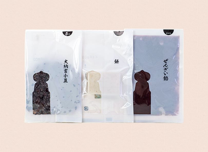 ※ぜんざい餡・大納言小豆・餅が個別包装されています。